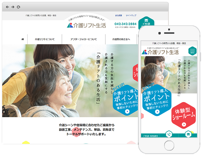 建築、リフォームの認可もある会社なので、介護リフトの取付はそれぞれのケースで様々な対応ができることを事例などを通して紹介しています。