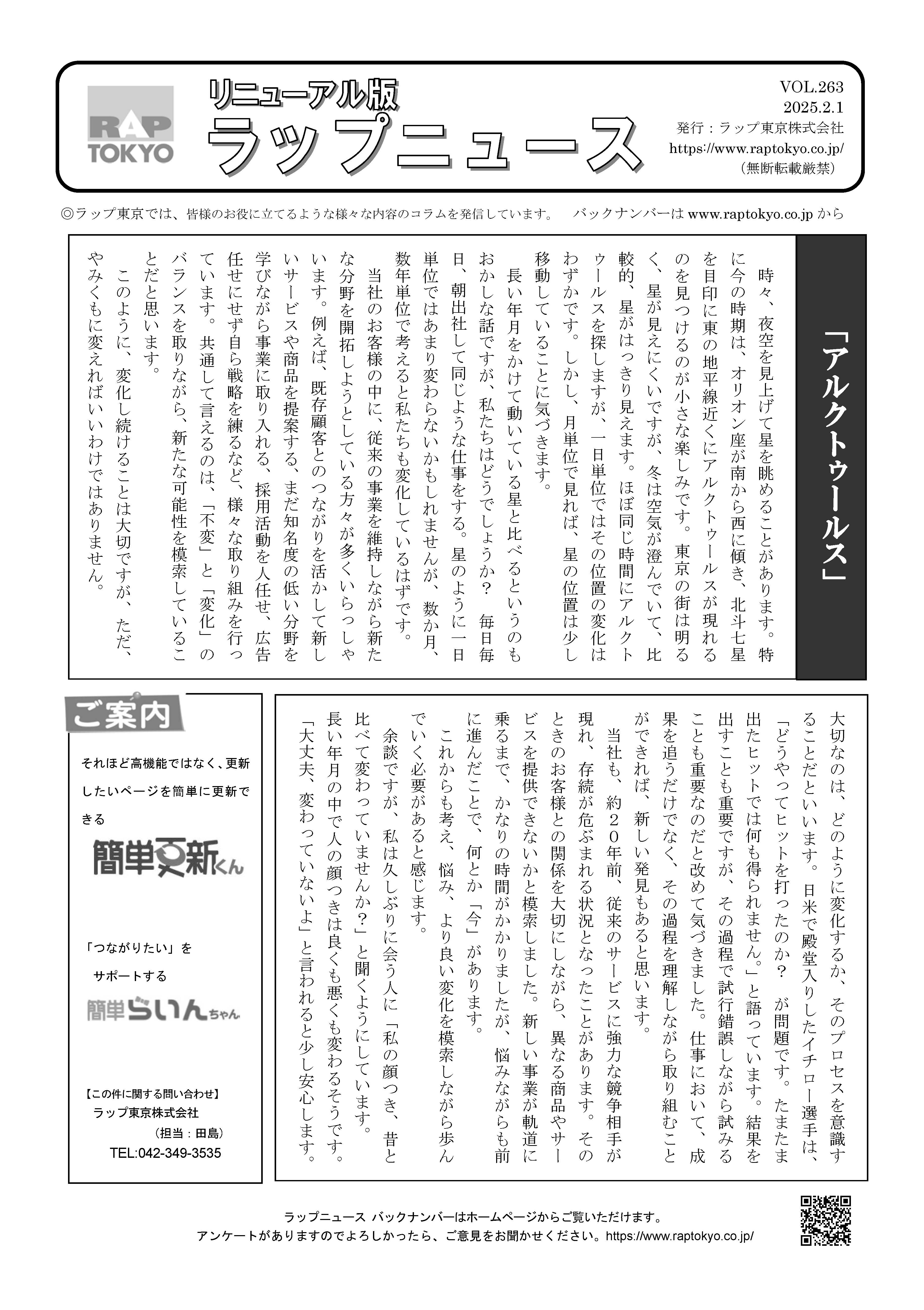 当社のお客様の中に、従来の事業を維持しながら新たな分野を開拓しようとしている方々が多くいらっしゃいます。例えば、既存顧客とのつながりを活かして新しいサービスや商品を提案する、まだ知名度の低い分野を学びながら事業に取り入れる、採用活動を人任せ、広告任せにせず自ら戦略を練るなど、様々な取り組みを行っています。共通して言えるのは、「不変」と「変化」のバランスを取りながら、新たな可能性を模索していることだと思います。