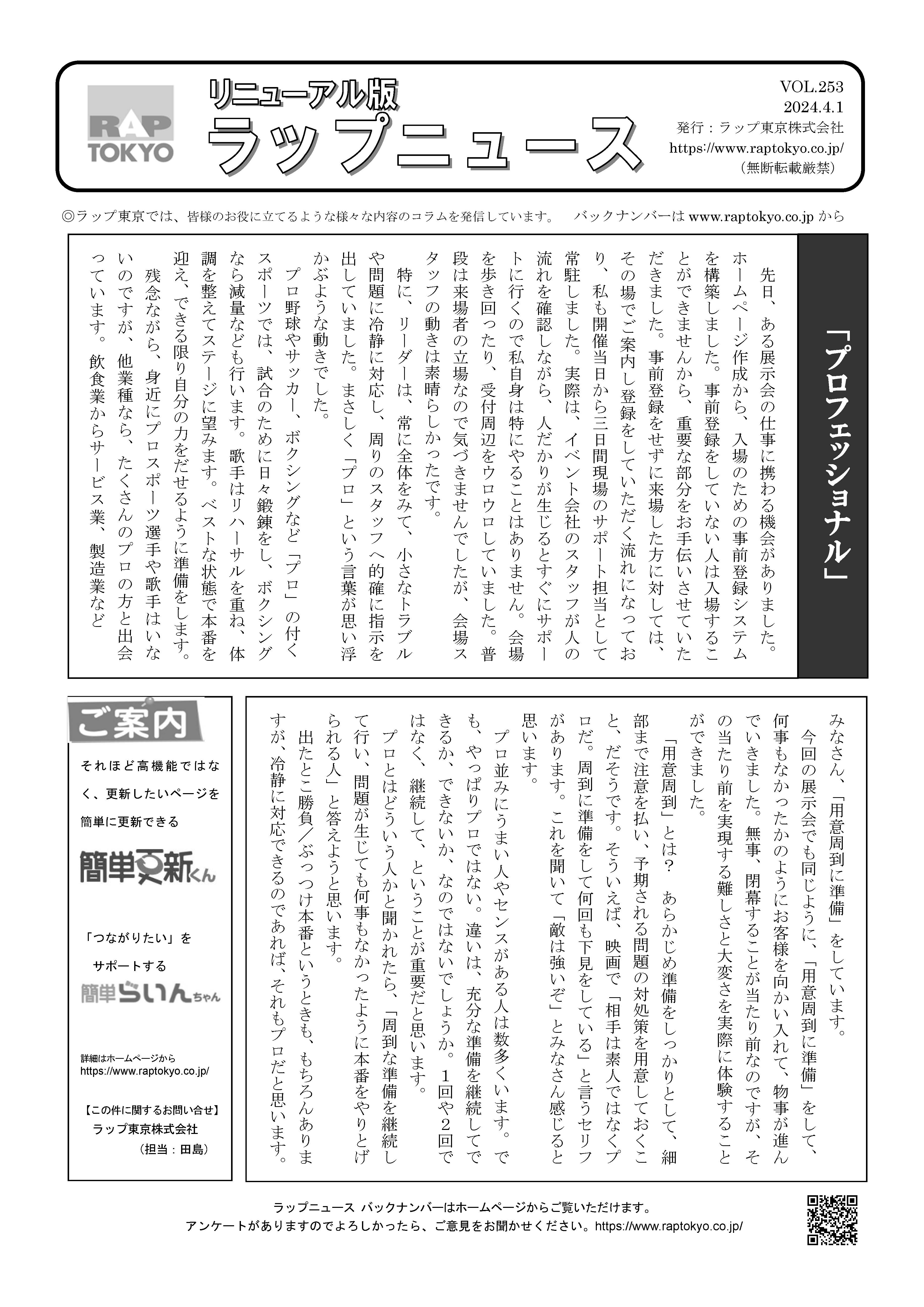 今回の展示会でも同じように、「用意周到に準備」をして、何事もなかったかのようにお客様を迎え入れて、物事が進んでいきました。無事、閉幕することが当たり前なのですが、その当たり前を実現する難しさと大変さを実際に体験することができました。
